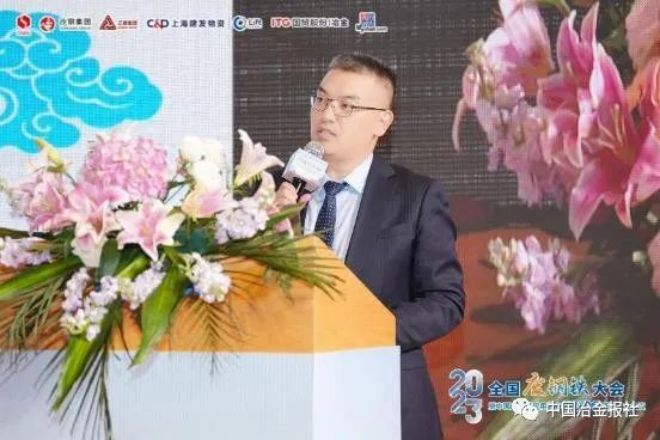會議上,中泰期貨股份有限公司商品事業部總監馬鳳勝做《再生鋼鐵原料期貨對行業的影響和企業應用》的主題演講。