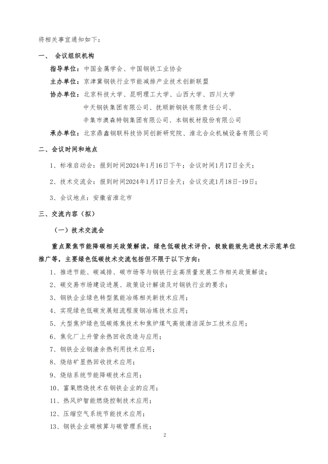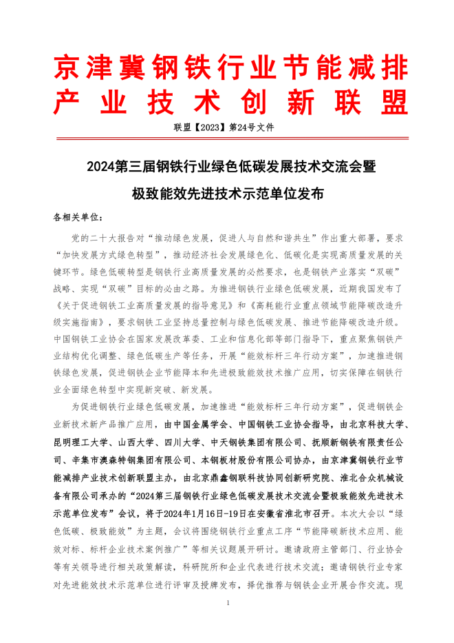 2024第三屆鋼鐵行業綠色低碳發展技術交流會暨極致能效先進技術示範單位發布