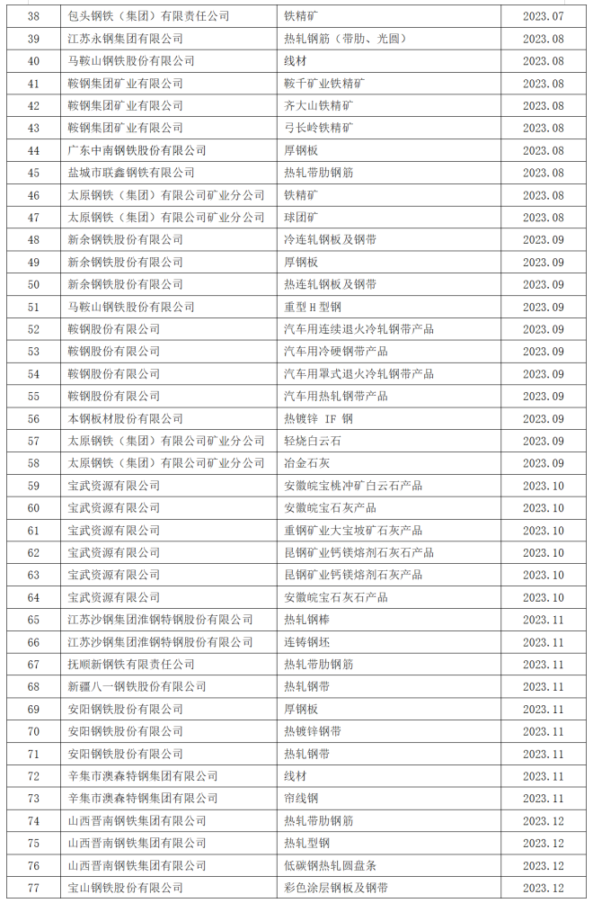 截至2023年12月29日,平台已累計發布產品種類規則(PCR)8份,EPD100份。其中,涉及鋼鐵類產品77份,鐵礦石產品12份,熔劑礦產品8份,空氣分離氣體產品3份。目前,平台注冊用戶3353家,涉及政府部門、鋼鐵企業、鐵礦石企業,以及汽車、家電、建築等用鋼企業、高校及研究機構;入駐平台的第三方認證機構達19家,均為國內外具有較大影響力的認證機構;平台國際影響力正在得到彰顯,WTO、世界鋼協等國際組織予以關注和肯定,並受邀參與COP28“鋼鐵標準原則”發布,為中國零碳鋼標準積極參與國際互認奠定了基礎。
