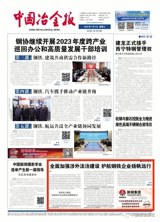 全麵加強涉外法治建設 護航鋼鐵企業揚帆遠行