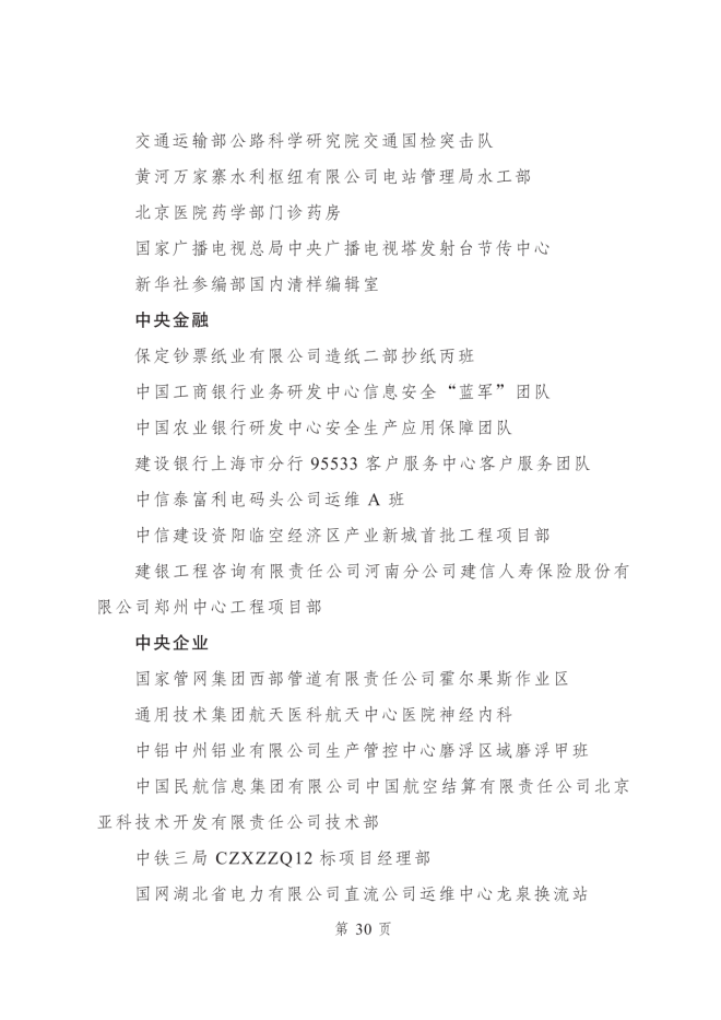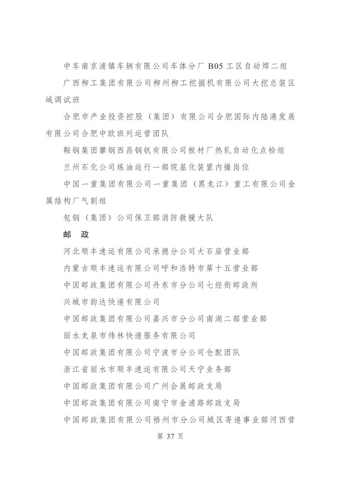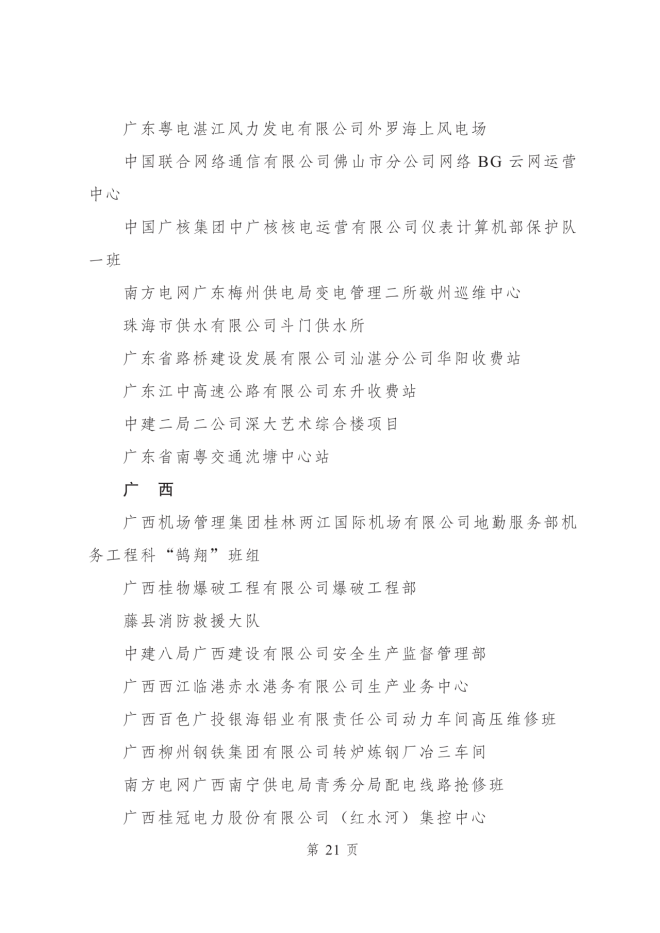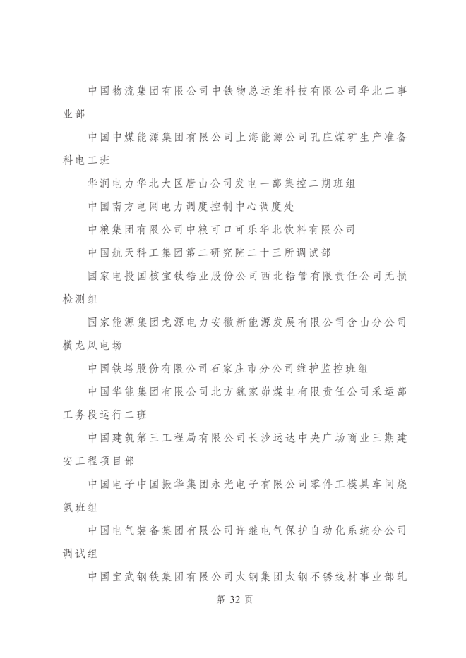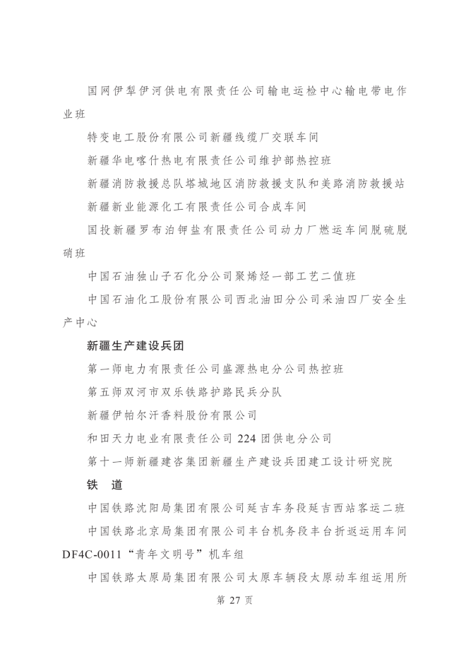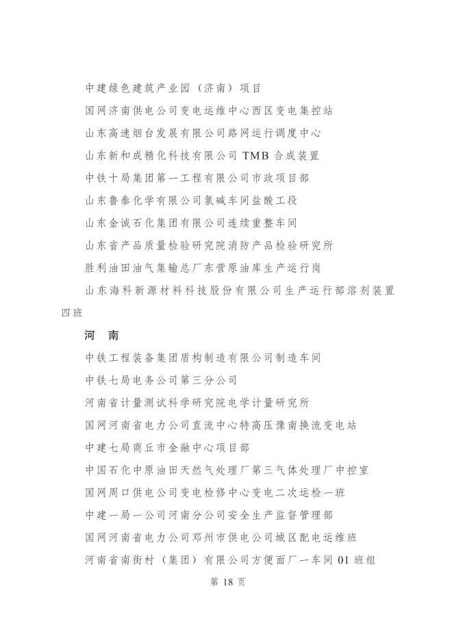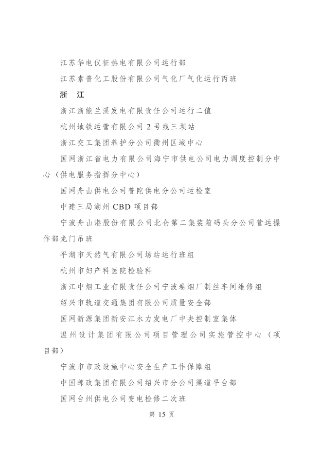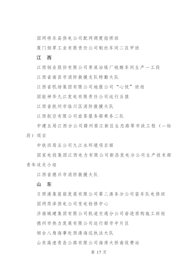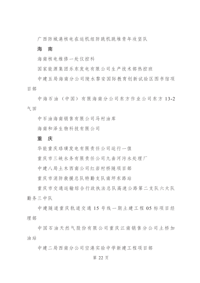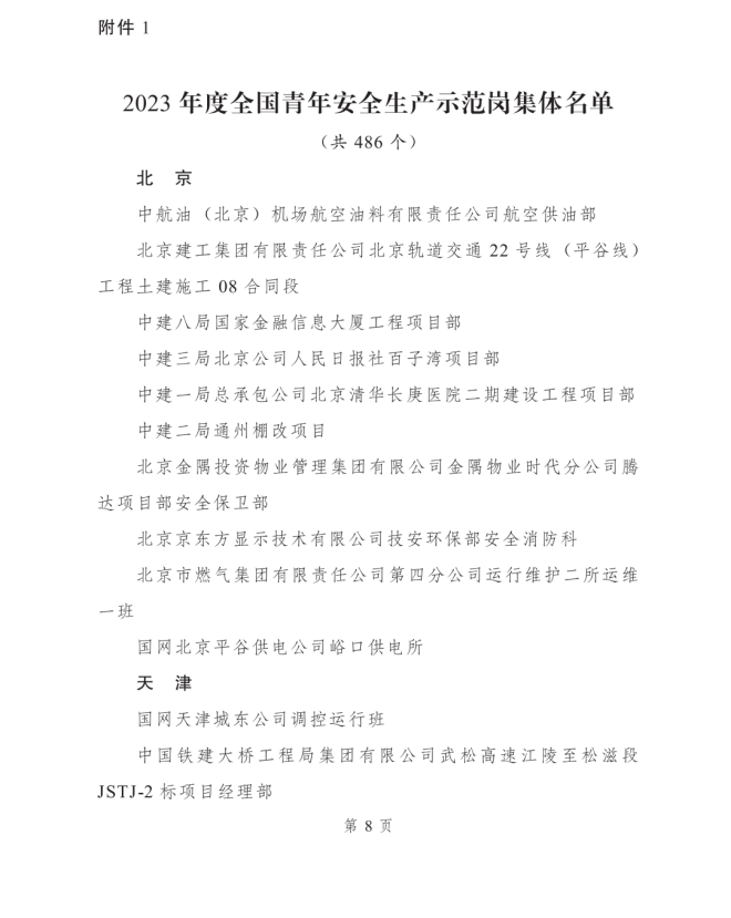 2023年度全國青年安全生產示範崗集體名單