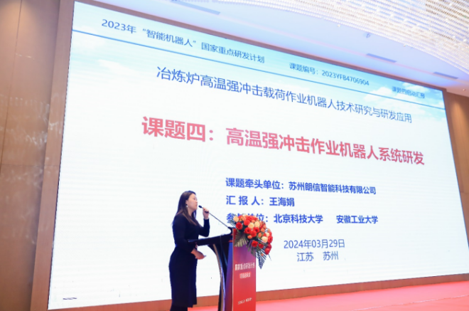 3月29日,由蘇州朗信智能科技有限公司(以下簡稱朗信科技)作為牽頭單位的國家重點研發計劃智能機器人重點專項——“冶煉爐高溫強衝擊載荷作業機器人技術研究與研發應用”項目啟動會在蘇州召開。這是工信部、地方政府、優秀企業、重點高校、行業協會攜手落實中央部署、大力培育和發展新質生產力的重要行動。