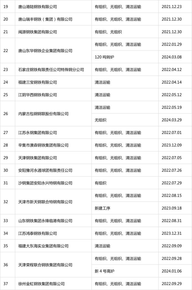 自2020年8月起,中國鋼鐵工業協會開展了鋼鐵企業超低排放改造和評估監測進展情況公示工作。截至目前,已有133家企業在鋼協網站進行公示。已公示企業名單彙總及各企業公示內容整理如下: