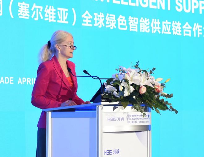 耶萊娜·貝戈維奇在致辭中代表塞爾維亞科技部向與會嘉賓致以問候,並預祝大會取得成功。她指出,這次大會是鋼鐵行業在推廣先進的綠色、智能解決方案,推動智能供應鏈、綠色轉型方麵邁出的一大步,高度契合共建“一帶一路”倡議。以“相聚塞爾維亞,攜手構建綠色智能供應鏈”為wei主zhu題ti,體ti現xian了le科ke學xue界jie和he工gong業ye界jie對dui研yan發fa創chuang新xin解jie決jue方fang案an和he最zui佳jia實shi踐jian的de渴ke望wang,使shi行xing業ye更geng加jia高gao效xiao為wei實shi現xian可ke持chi續xu發fa展zhan目mu標biao作zuo出chu貢gong獻xian。生sheng產chan綠lv色se的de鋼gang鐵tie,可ke以yi減jian少shao碳tan足zu跡ji和he對dui環huan境jing的de負fu麵mian影ying響xiang。河he鋼gang認ren識shi到dao負fu責ze任ren的de生sheng產chan並bing努nu力li通tong過guo應ying用yong科ke學xue、知zhi識shi創chuang新xin等deng方fang式shi,使shi其qi生sheng產chan過guo程cheng更geng加jia綠lv色se是shi極ji其qi重zhong要yao的de。通tong過guo智zhi能neng技ji術shu優you化hua生sheng產chan流liu程cheng,依yi托tuo綠lv色se解jie決jue方fang案an進jin一yi步bu推tui動dong行xing業ye的de進jin步bu。希xi望wang大da家jia加jia強qiang合he作zuo、共同努力,實現未來可持續發展的目標。