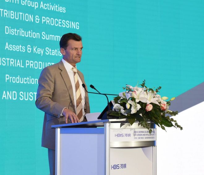於yu勇yong在zai致zhi辭ci中zhong代dai表biao河he鋼gang感gan謝xie全quan球qiu戰zhan略lve合he作zuo夥huo伴ban長chang期qi以yi來lai對dui河he鋼gang的de高gao度du信xin任ren和he支zhi持chi,向xiang出chu席xi大da會hui的de嘉jia賓bin表biao示shi熱re烈lie的de歡huan迎ying。他ta指zhi出chu,當dang前qian,新xin科ke技ji革ge命ming正zheng在zai加jia速su全quan球qiu供gong應ying鏈lian的de重zhong構gou,綠lv色se、智zhi能neng已yi經jing成cheng為wei全quan球qiu產chan業ye發fa展zhan的de主zhu旋xuan律lv。今jin天tian,我wo們men緊jin緊jin圍wei繞rao綠lv色se智zhi能neng在zai塞sai爾er維wei亞ya深shen化hua供gong應ying鏈lian合he作zuo,這zhe是shi以yi科ke技ji創chuang新xin推tui動dong產chan業ye融rong合he發fa展zhan的de生sheng動dong實shi踐jian,對dui加jia快kuai全quan球qiu綠lv色se智zhi能neng供gong應ying鏈lian重zhong構gou,推tui動dong全quan球qiu產chan業ye綠lv色se轉zhuan型xing和he智zhi能neng化hua升sheng級ji具ju有you積ji極ji的de重zhong大da作zuo用yong。全quan球qiu化hua最zui大da限xian度du地di讓rang不bu同tong的de國guo家jia、地區、企業能擁有最好的資源和合作方式。河鋼對世界範圍內的合作充滿了信心,全球以綠色、智能、低碳為契機的供應鏈重構,給我們各方麵帶來了新的合作機遇。河鋼願意與全球合作夥伴一道在歐洲、在塞爾維亞,探索更好的合作方式,發揮更強大的戰略協同價值,為推動全球產業更加綠色、更加低碳、更加智能貢獻智慧和力量。