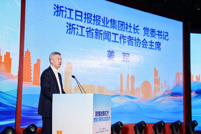 (浙報集團社長、黨委書記,浙江省新聞工作者協會主席薑軍)