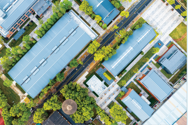寶鋼包裝6個生產基地獲評國家級“綠色工廠”,3個生產基地獲評省級 “綠色工廠”。圖為寶鋼包裝6家國家級“綠色工廠”之一的河南寶鋼製罐廠廠房屋頂分布式光伏發電。