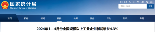 1—4月份,全國規模以上工業企業實現利潤總額20946.9億元,同比增長4.3%。
