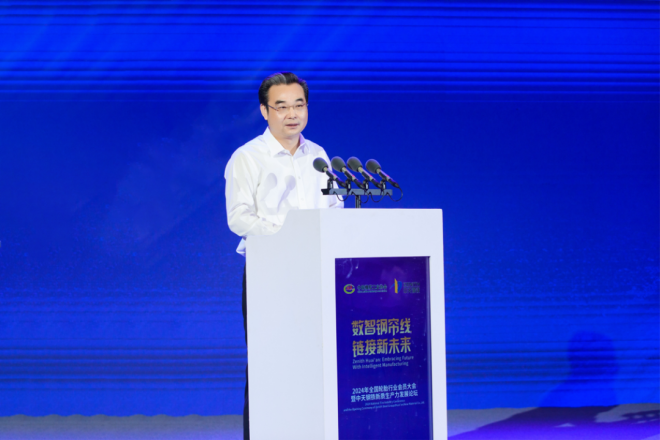 中天鋼鐵集團(淮安)新材料有限公司總經理盛榮生從集團發展曆程、新質生產力發展以及未來展望等三方麵作中天鋼鐵新質生產力發展報告。中天淮安項目總投資202億元,建設160萬噸超高強精品鋼簾線項目,專注於生產ST及UT級鋼簾線。項目占地麵積2802畝,總建築麵積142萬平方米,建設6個生產分廠、技術研發中心、智能裝備中心和客服中心等。項目是全球單體規模最大的精品鋼簾線生產基地,依托5G+工業互聯網平台,在行業內率先實現全過程數字化管控,在效率提升、成本優化、智能化運營等方麵處於領先地位。