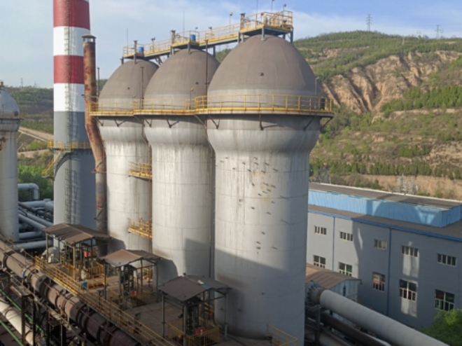 圖為山西省某鋼鐵公司2號1280m³高爐配置的3座仿霍戈文內燃式熱風爐即將采用爐殼利舊在線改造為豫興懸鏈線頂燃式熱風爐項目啟動儀式現場2