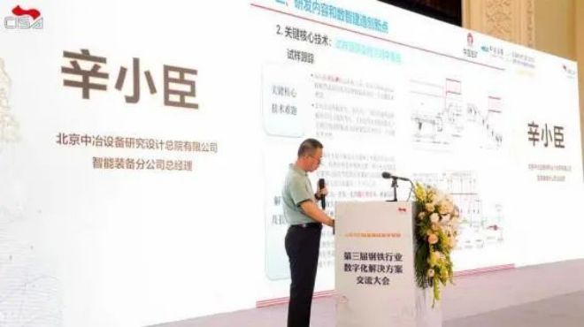 北京中冶設備研究設計總院有限公司智能裝備分公司總經理辛小臣做《數智建造技術在中厚板試樣建設項目中的應用》主題演講
