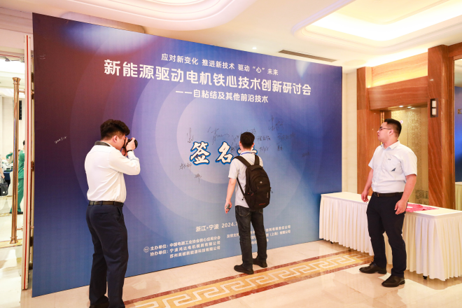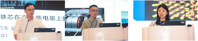 隨後,首鋼智新電磁材料(遷安)股份有限公司首席工程師程林作《新能源汽車用自粘結塗層產品的開發及應用》報告;安泰科技股份有限公司非晶製品分公司總經理助理李立軍作《非晶合金帶材在高頻高效電機中的應用探索》報告;關西赫林奧斯奧地利有限責任公司中國銷售經理黃偉傑作《EB549 RAPID自粘結塗液在電動汽車油冷電機中的應用》報告;奎克好富頓投資管理(上海)有限公司高級業務拓展經理李國洋作《自粘結塗層QH EVERTREAT 7000老化性能研究》報告;蘇州英磁新能源科技有限公司董事長、沈陽工業大學二級教授裴瑞琳作《新能源汽車驅動電機鐵心材料應用技術發展趨勢》報告;寧波鴻達電機模具有限公司董事長宋紅傑作《快速自粘技術在驅動電機非晶鐵心、極薄矽鋼鐵心中的實踐與應用》報告;廣州小鵬汽車科技有限公司研發工程師奚一煒作《自粘鐵芯在高性能電機上的應用》的報告;中汽研汽車檢驗中心(寧波)有限公司丁旭作《電動汽車用驅動電機係統測試要求與方法》的報告;中國電器工業協會非晶材料應用分會學術主管祁萍作《加快非晶材料應用技術的研究,助力新能源產業》的報告。