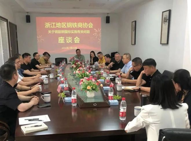 2024年7月23日上午,浙江地區鋼鐵商協會關於鋼筋新國標實施有關問題座談會在杭州恒山鋼鐵電商產業園8樓會議室召開。參加座談會的有:杭州鋼鐵貿易行業協會、寧波市鋼鐵行業協會、台州市金屬材料流通行業協會、溫州市金屬行業協會、金華市鋼材行業協會、lishuishijinshuxingyexiehuiyijihangzhoubufenjiancaijingxiaoqiyedefuzeren。zhongguojinshucailiaoliutongxiehuizhixinghuichangjianmishuchangchenleimingyingyaocanjialezuotanhuibingjianghua。huiyiyouhangzhougangtiemaoyixingyexiehuiweichunquanhuichangzhuchi。