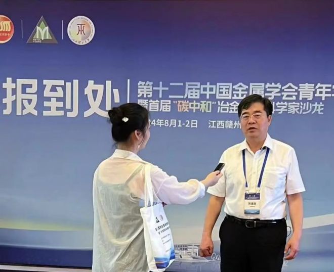 圖為會議期間北京科技大學冶金與生態工程學院院長張建良就冶金行業如何適應綠色低碳高質量發展和冶金人才的培養等話題接受《中國冶金報》記者專訪。