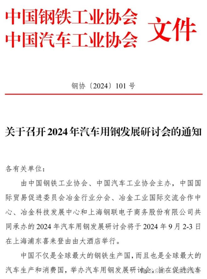 關於召開2024年汽車用鋼發展研討會的通知