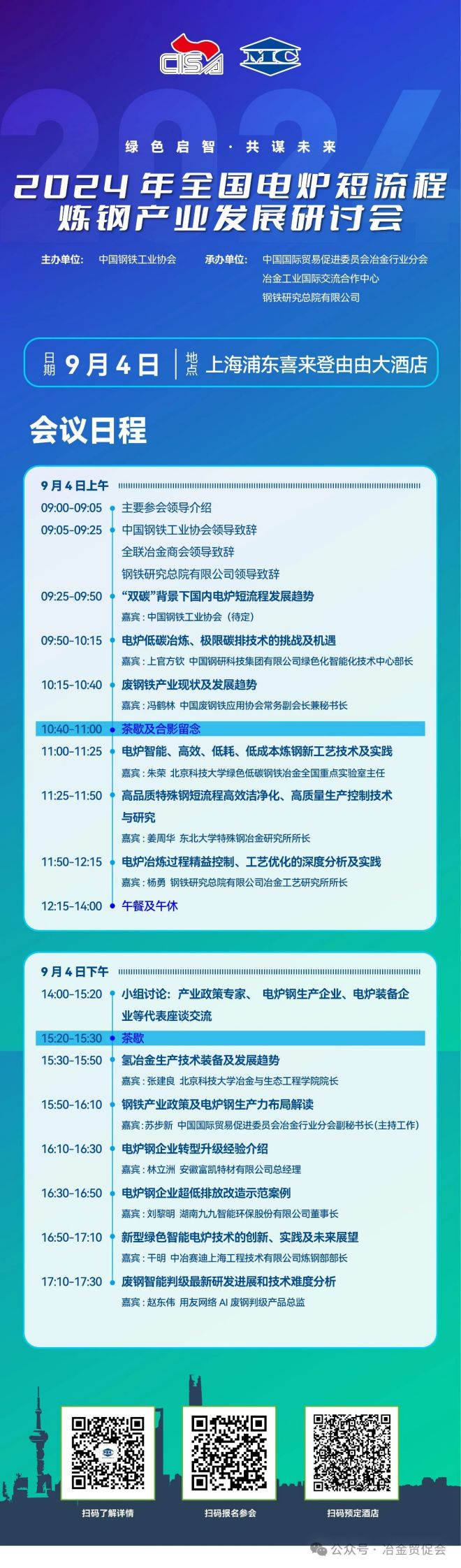 日程更新 | 2024年全國電爐短流程煉鋼產業發展研討會