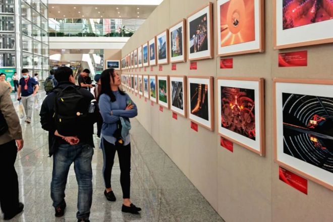 與會嘉賓及旅客等參觀中國冶金報社入選本次影展的照片