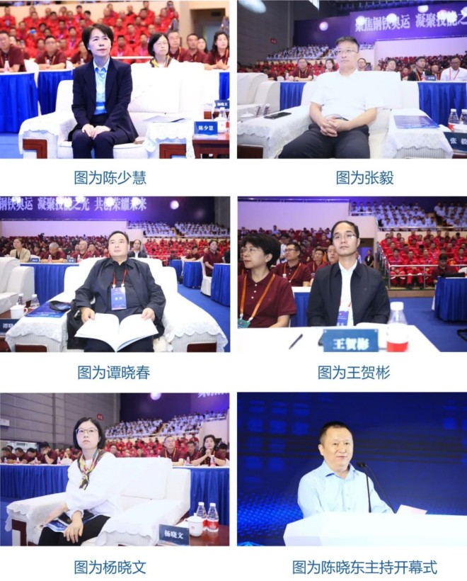 張家港市委書記韓衛;中鋼協副秘書長,中國冶金報社黨委書記、社長範鐵軍;中鋼協組織人事部(黨委辦公室)主任臧若愚;中國機械冶金建材工會全國委員會鋼鐵工作部部長、一級調研員王欣;江蘇省機冶石化工會主任張旭海;江蘇省職業技能鑒定中心主任楊進保;蘇州市總工會黨組成員、副主席吳洪斌;張家港市委常委,副市長李炳龍;張家港市人大常委會黨組成員,市總工會黨組書記、主席夏立新;江蘇揚子江國際冶金工業園黨工委書記、錦豐鎮黨委書記沙立平;蘇州市人力資源和社會保障局四級調研員文心;沙鋼集團常務執行董事、總裁龔盛;沙鋼集團常務執行董事、副總裁,沙鋼鋼鐵有限公司董事長陳少慧;張家港市人力資源和社會保障局局長張毅;冶金人才資源開發中心黨委書記、主任譚曉春;冶金工業教育資源開發中心黨總支副書記、副主任(主持工作)王賀彬;蘇州市總工會勞動和經濟工作部部長楊曉文等出席開幕式。沙鋼集團常務執行董事、副總裁陳曉東主持開幕式。