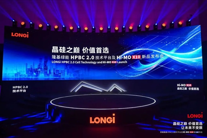 據介紹,此次發布的Hi-MO X10是基於跨時代HPBC2.0電池技術打造的一款精品組件,最高量產功率達670W,較行業TOPCon主流組件功率高30W以上。隆基綠能董事長鍾寶申在產品發布中表示,該組件采用的HPBC2.0電池量產的效率已經達到了26.6%,是晶矽電池最後一代實現絕對效率1%跨越的電池技術,宣告BC時代真正來臨。