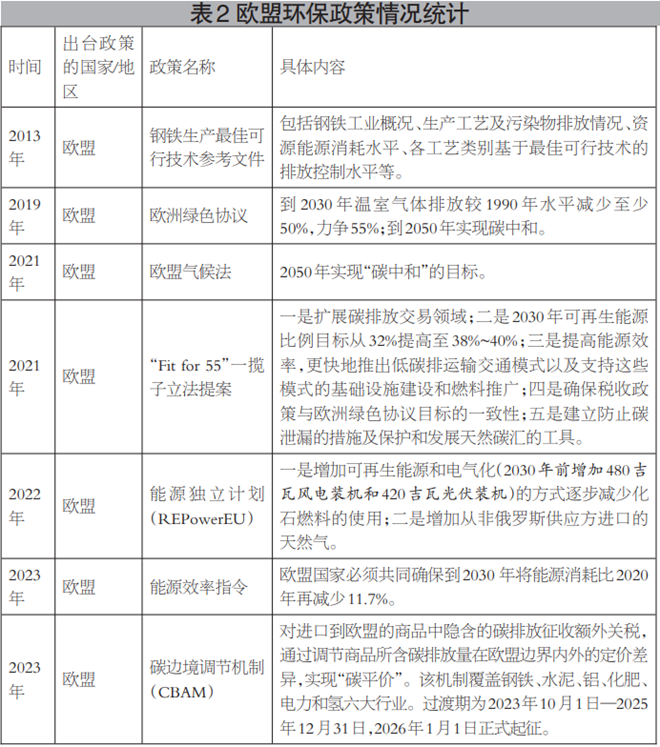 二是環保約束推動產業技術革新。歐盟及其各成員國執行嚴苛的環保政策是應對行業周期性危機、進一步削減產能、整合優質資產的重要抓手。歐盟層麵與環境相關的主要法律和法規分散在各種指令和法規,包括環保、節能、低碳等方麵。詳情見表2。