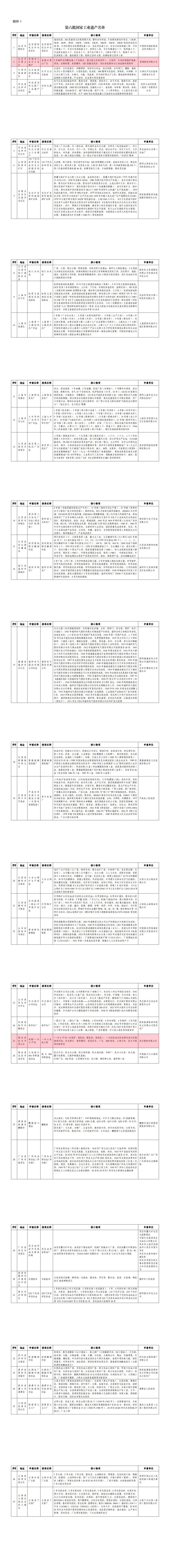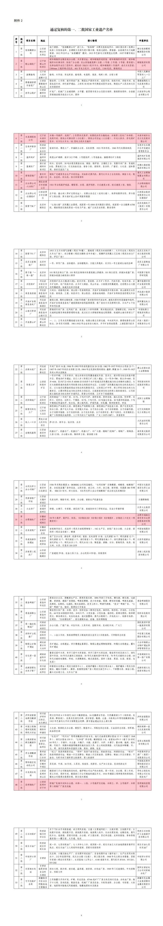 通知中公布了第六批國家工業遺產和通過複核的第一批、第二批國家工業遺產名單。