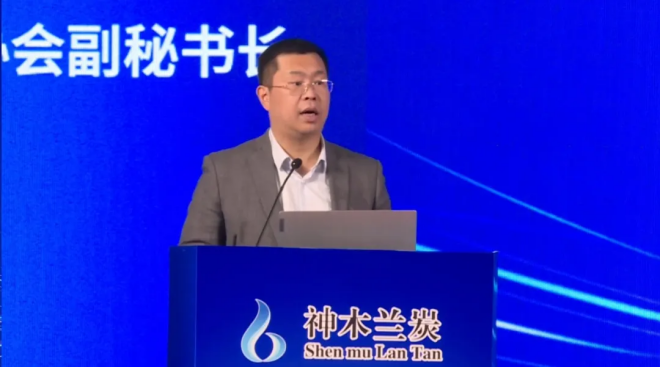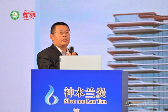 中國國際工程谘詢公司能源業務部煤炭清潔高效利用處處長劉光啟為與會代表做題為《煤炭清潔高效利用“十五五”及蘭炭(提質煤)產業發展》的報告。