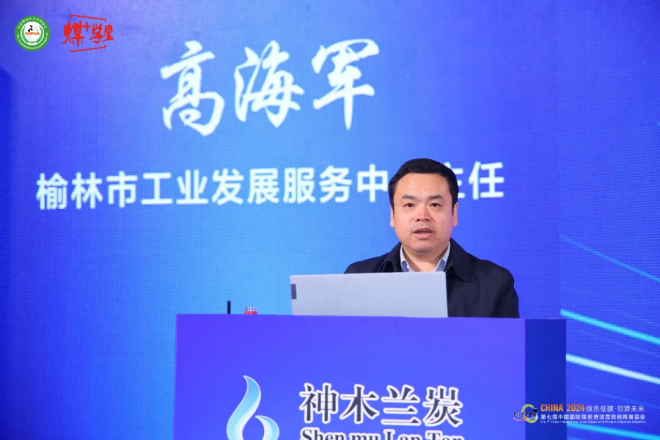 榆林市工業發展服務中心主任高海軍為與會代表做題為《蘭炭主要產區——榆林市產業運行與發展》的報告。