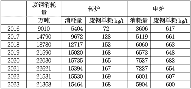 2016年⁓2023年鋼鐵行業廢鋼總消耗、轉爐消耗、電爐消耗