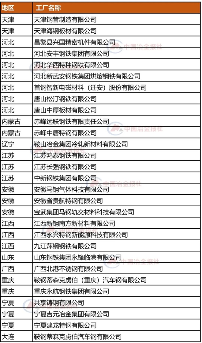 其中,鋼鐵行業多家企業入選“綠色工廠”,具體名單如下: