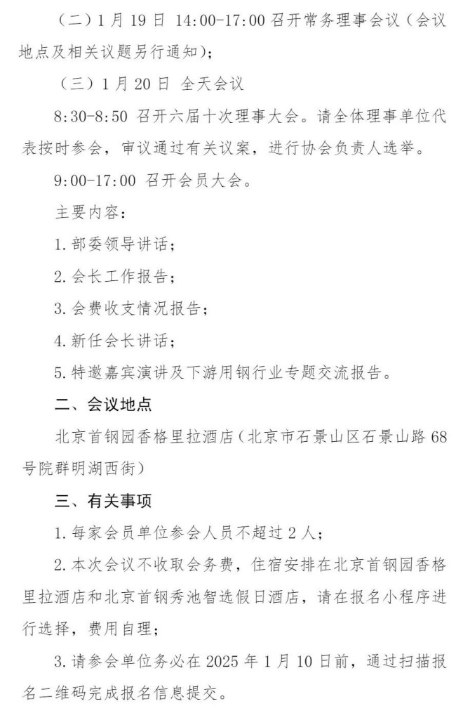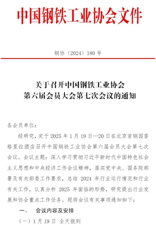 關於召開中國鋼鐵工業協會第六屆會員大會第七次會議的通知