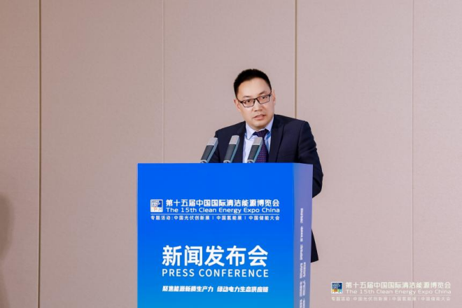 中國電力企業聯合會副秘書長兼電動交通與儲能分會會長劉永東,中國電力企業聯合會國際合作部(港澳台事務辦公室)zhurenxuguangbin,zhongguoguangfuxingyexiehuiguangfufadianzhuanweihuifumishuchangdaisiyuan,zhongguochanyehaiwaifazhanxiehuichangwufumishuchangjiang贇,zhongguomaocuhuijianshexingyefenhuihuichangzhuli、北京泰格爾展覽有限公司總經理王宏,中國電力企業聯合會電動交通與儲能分會副秘書長馬曉光等嘉賓蒞臨現場,來自陽光電源、天合光能、華晟新能源、億緯儲能、晶澳太陽能、雙良氫能等清潔能源領域的領軍企業代表也出席了發布會。發布會由中國電力企業聯合會國際合作部(港澳台事務辦公室)副主任劉冬野主持。