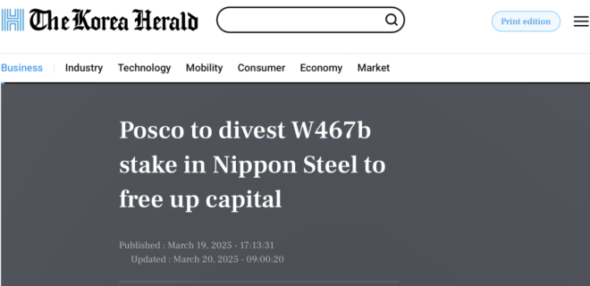 在商業報告中,浦項製鐵將其持有的價值 4670 億韓元(3.21 億美元)的日本製鐵股份歸類為持有待售資產,但該公司尚未確定出售的時間和方式。