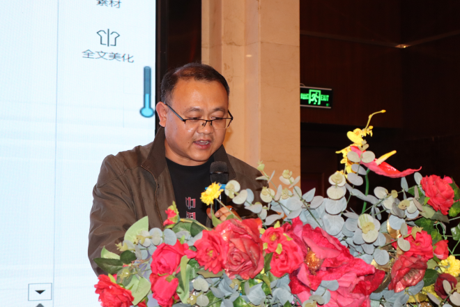 營口創興科技有限公司董事長楊恩良介紹《營口創興科技研製生產的高強納米絕熱板在冶金、耐材窯爐的應用》,分享創新產品應用實踐。