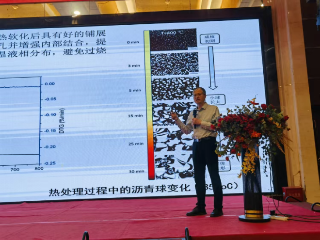 11日上午的報告環節,鄭州大學賈全利教授在《球瀝青加入量對 Al2O3 - SiC - C 澆注料組成、結構和性能的影響》報告中,深入探究球瀝青在澆注料中的關鍵作用。
