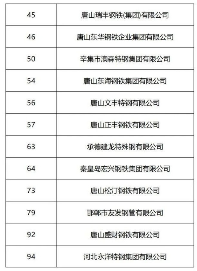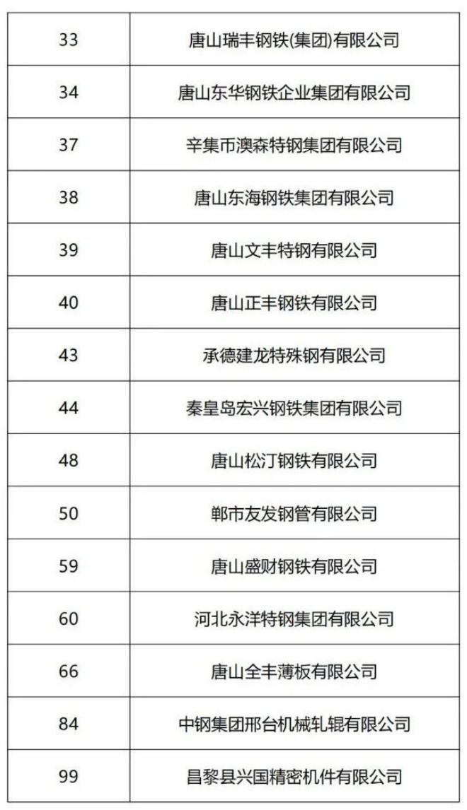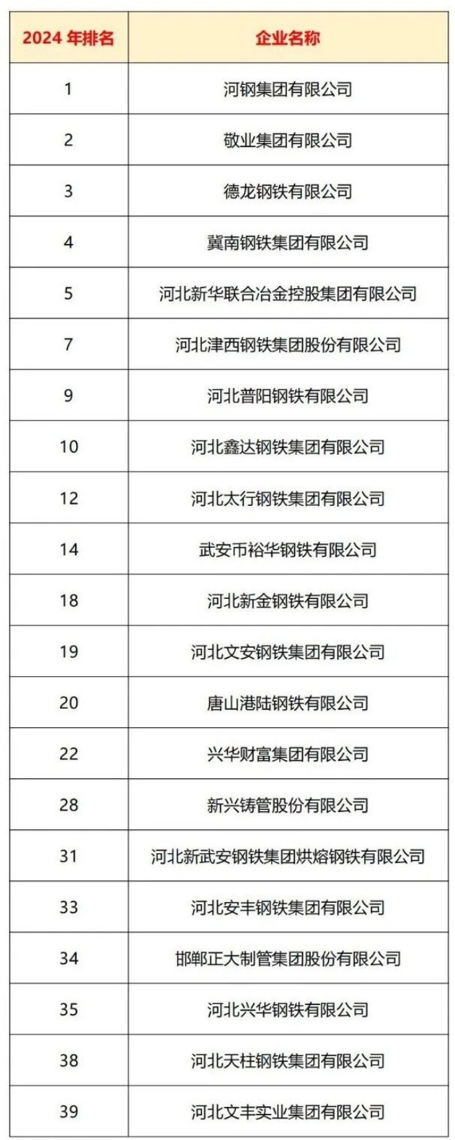 近日,河北省企業聯合會發布了2024河北企業100強和製造業企業100強兩大榜單。其中,33家鋼鐵企業入選河北企業100強榜單,36家鋼鐵企業入選製造業100強榜單。