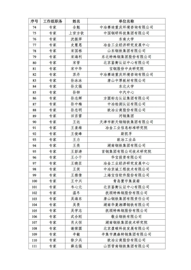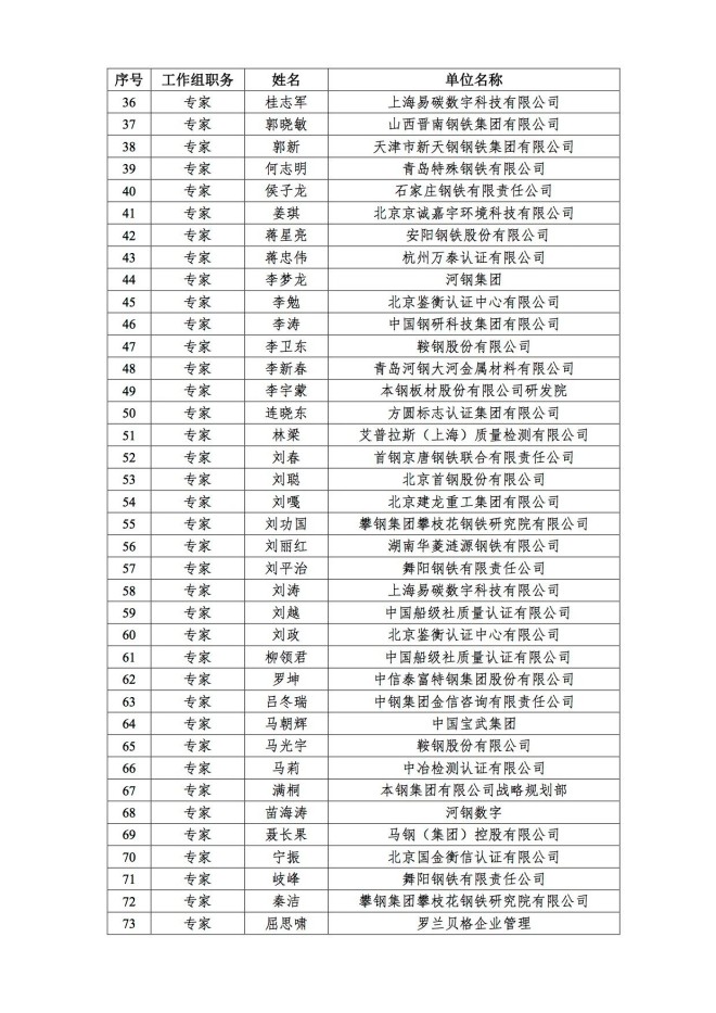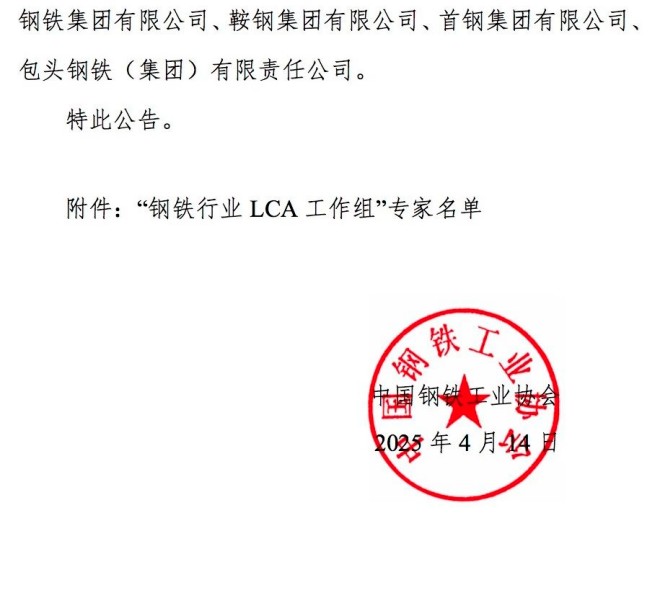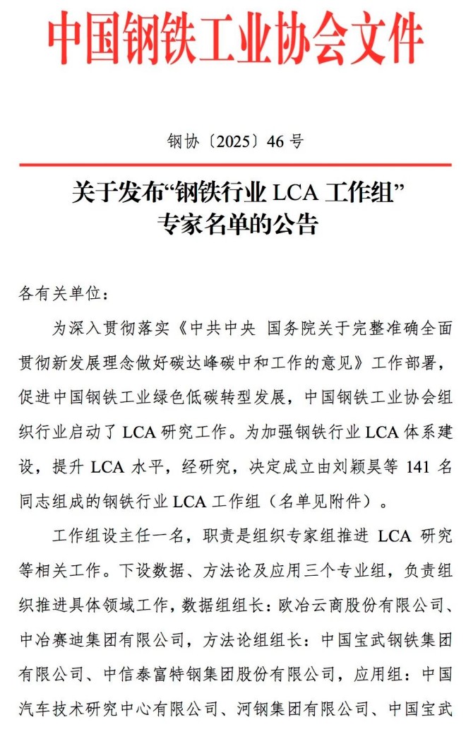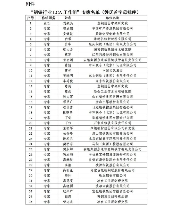 關於發布“鋼鐵行業LCA工作組”專家名單的公告