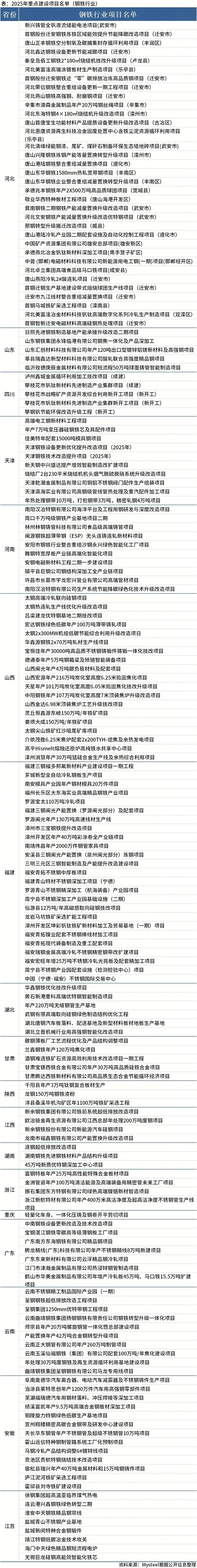 今年以來,河北、江蘇、 山東、天津、重慶、河南、山西、福建、湖北、甘肅、陝西、江西、浙江、廣東、湖南、雲南、安徽、四川公布2025年重點建設項目名單,其中,涉及鋼鐵行業相關項目172個。