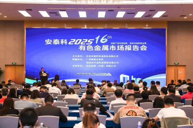 4月29日,安泰科2025年(第十六屆)有(you)色(se)金(jin)屬(shu)市(shi)場(chang)報(bao)告(gao)會(hui)在(zai)北(bei)京(jing)鐵(tie)道(dao)大(da)廈(sha)召(zhao)開(kai),會(hui)議(yi)深(shen)入(ru)解(jie)析(xi)有(you)色(se)金(jin)屬(shu)市(shi)場(chang)熱(re)點(dian),研(yan)判(pan)金(jin)屬(shu)價(jia)格(ge)走(zou)向(xiang),挖(wa)掘(jue)未(wei)來(lai)發(fa)展(zhan)機(ji)遇(yu),促(cu)推(tui)有(you)色(se)金(jin)屬(shu)產(chan)業(ye)加(jia)速(su)轉(zhuan)型(xing)升(sheng)級(ji)。本(ben)次(ci)會(hui)議(yi)由(you)北(bei)京(jing)安(an)泰(tai)科(ke)信(xin)息(xi)股(gu)份(fen)有(you)限(xian)公(gong)司(si)主(zhu)承(cheng)辦(ban),得(de)到(dao)了(le)廣(guang)州(zhou)期(qi)貨(huo)交(jiao)易(yi)所(suo)、深圳市中金嶺南期貨有限公司、托克投資(中國)有限公司的大力支持。