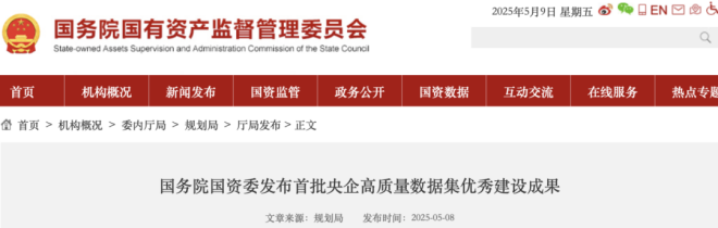 5月8日,國務院國資委發布首批央企高質量數據集優秀建設成果名單。