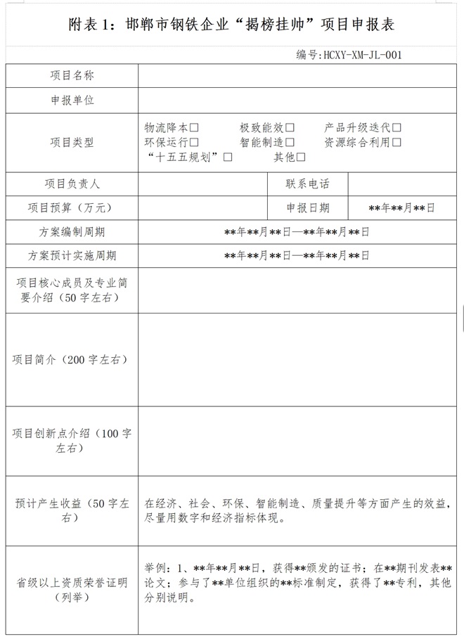 關於邯鄲市鋼鐵企業“十五五”發展規劃項目“揭榜掛帥”的公告