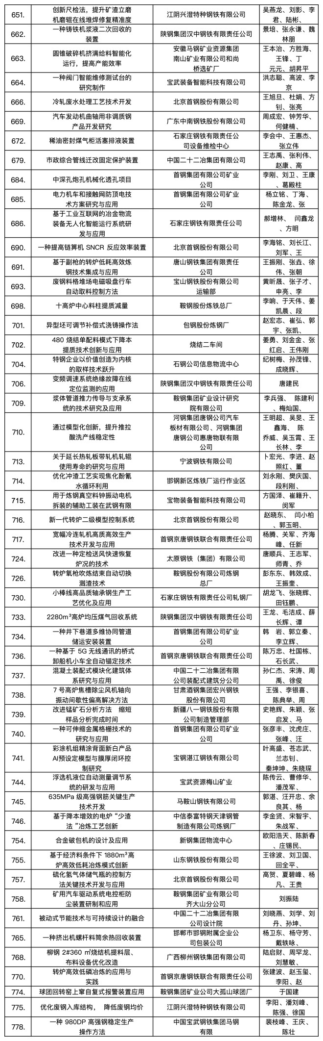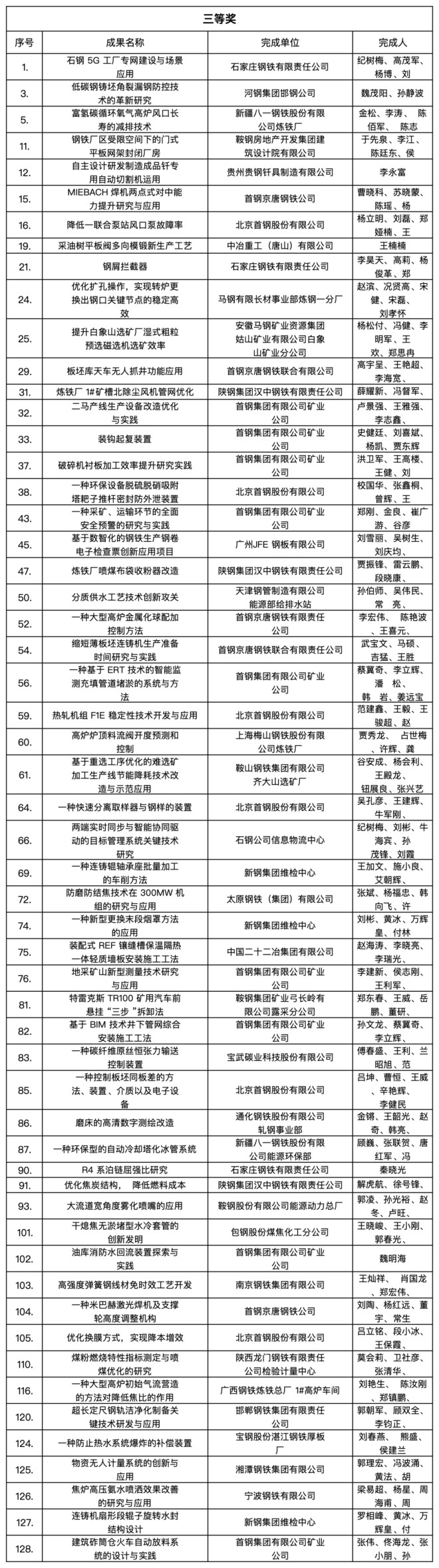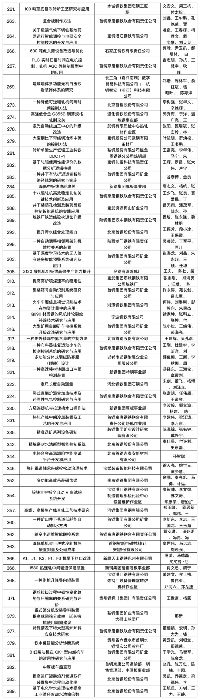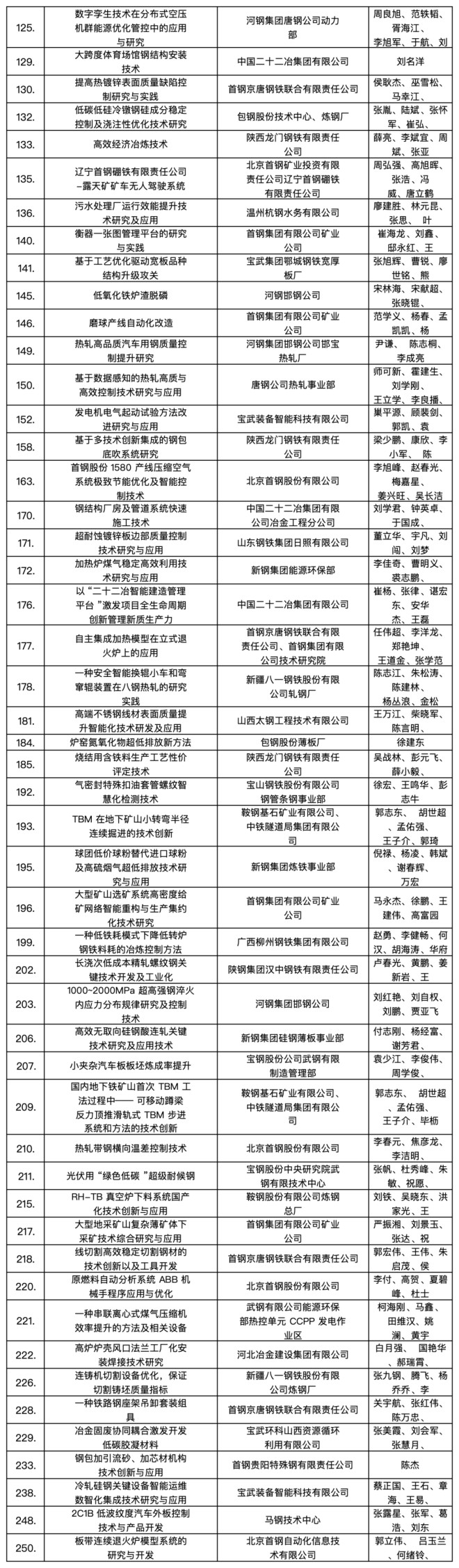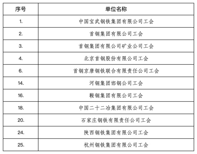 名單分為優秀組織單位名單與獲獎名單兩部分,其中鋼鐵及相關企業整理如下——