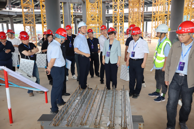 隨後,參會專家、企業家和全體代表前往中建一局承建的“中國稀土集團總部及科創中心”項目現場進行質量觀摩。該項目集成先進施工技術與管理模式,運用多項BIM技術和多維模擬仿真程序及軟件,提高質量和工效,展現了鋼結構建築在質量管控、綠色施工及智能化應用方麵的顯著成效,為行業提供了可借鑒的實踐樣板。