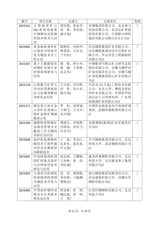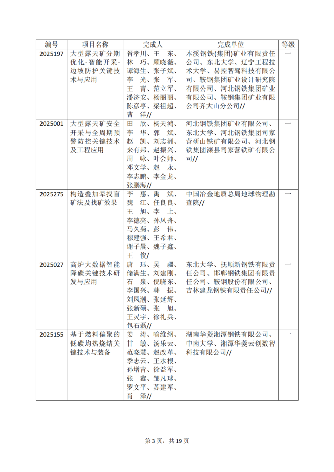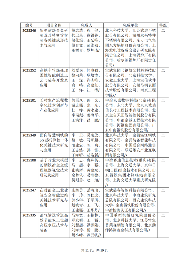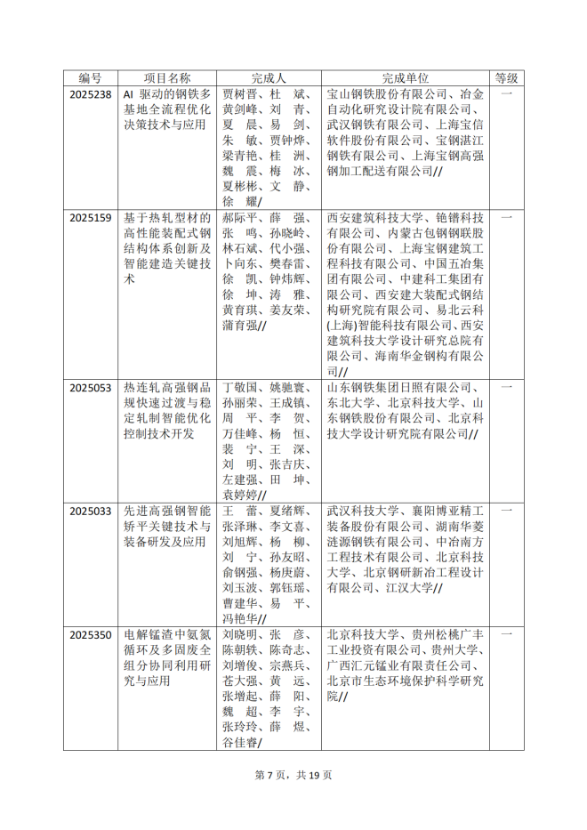 2025年冶金科學技術獎專業評審推薦獲獎項目公告