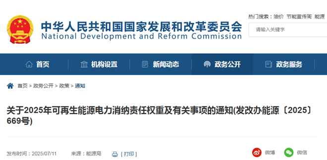近日,國家發展改革委辦公廳、國家能源局綜合司發布了關於2025年可再生能源電力消納責任權重及有關事項的通知。