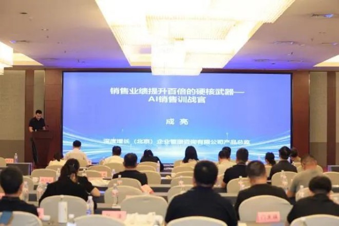 深度增長產品總監成亮作題為《銷售業績提升百倍的硬核武器——AI銷售訓戰官》的主旨報告