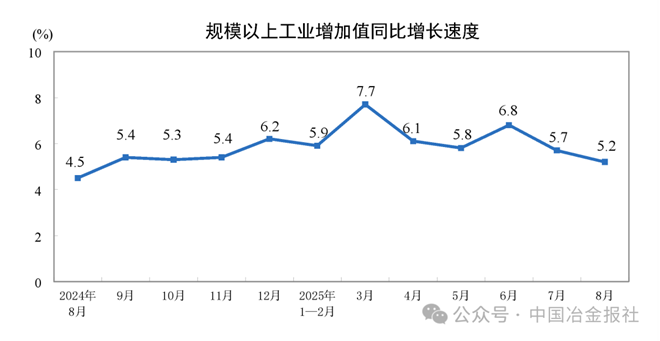 國家統計局公布的數據顯示:2025年8月份,中國粗鋼產量7737萬噸,同比下降0.7%;生鐵產量6979萬噸,同比增長1.0%;鋼材產量12277萬噸,同比增長9.7%。