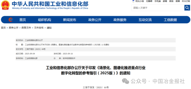 9月16日,工業和信息化部發布關於印發《場景化、圖譜化推進重點行業數字化轉型的參考指引(2025版)》的通知。