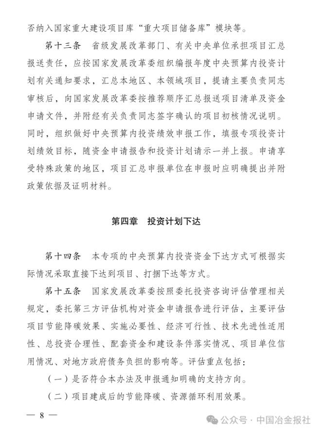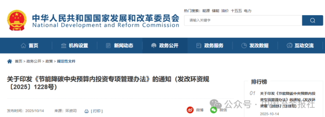 10月14日,國家發展改革委網站發布了關於印發《節能降碳中央預算內投資專項管理辦法》的通知(以下簡稱《通知》)。