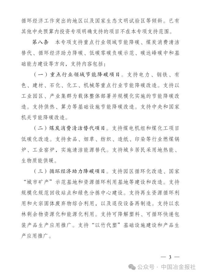 從《通知》中獲悉,本專項支持電力、鋼鐵、有色、建材、石化、化工、機械等重點行業領域節能降碳、煤炭消費清潔替代、循環經濟助力降碳、低碳零碳負碳示範、碳達峰碳中和基礎能力建設等方向。