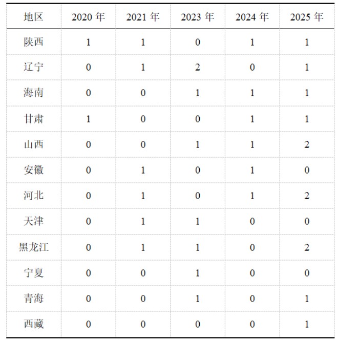 各屆的地方級案例數量見表2所示,廣東省案例總量排名第一,為23個,但各屆的案例數量整體呈下降趨勢;江蘇省案例總量排名第二,為21個,各屆案例數量保持穩定;四川省、上海市的案例總量並列第三,各屆數量均較穩定;浙江省案例總量排名第五,近兩年入選案例數量增加。